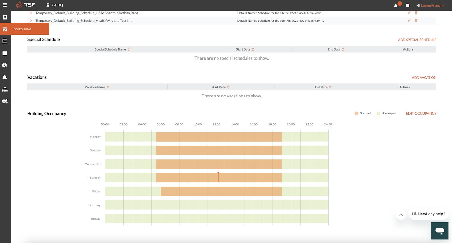Buildings don't operate in a perfect Monday-to-Friday routine, and neither should your scheduling system. 75F's Vacation Schedules and Special Schedules ensure your building responds appropriately to both planned and unexpected changes: