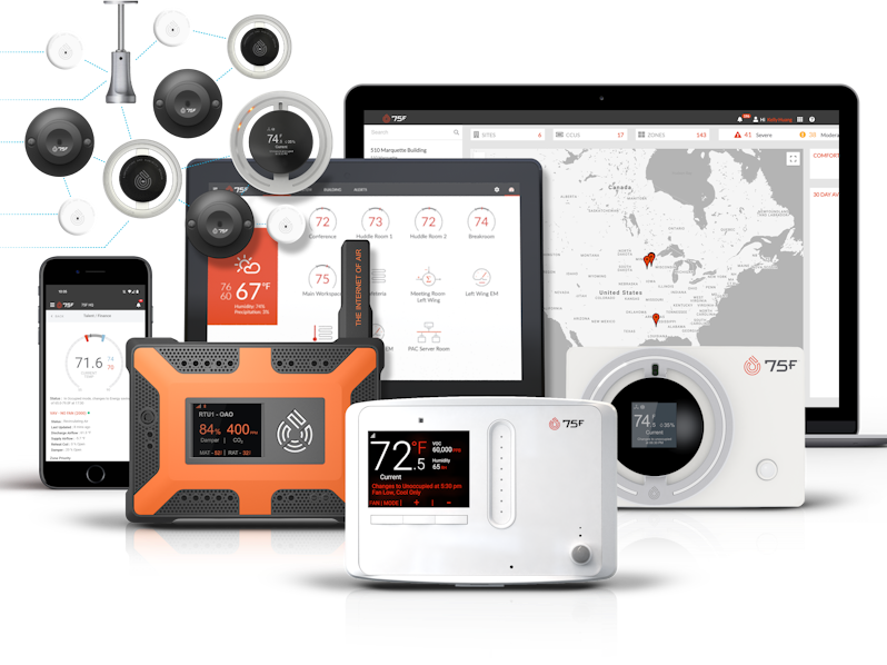 HyperStat: This 75F offering is a commercial thermostat and humidistatwith 8 onboard sensors for superior IAQ management and hyper-localized temperature control.