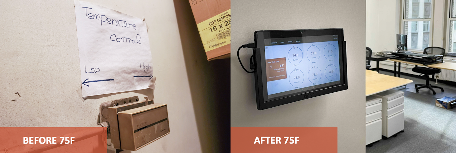 Bright Power engaged 75F in a pilot to control the space’s disparate systems with goals to reduce energy waste, increase comfort, and evaluate how IoT-based controls can help Bright Power’s commercial and multifamily clients achieve the same. The company also needed an open-source solution that could install in tandem with Tunstall radiator products.