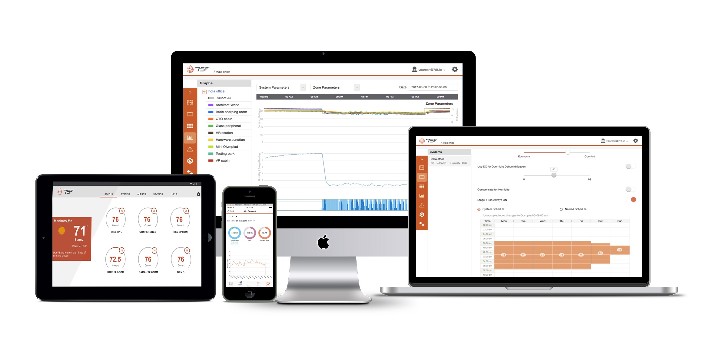 We do more than simply report your energy use. We proactively manage it and give you the ability to do the same. With 75F® Facilisight®, our suite of web and mobile apps, you can view everything from your entire portfolio's performance to real-time zone data. Compatible with iPhone, iPad and Android phones.