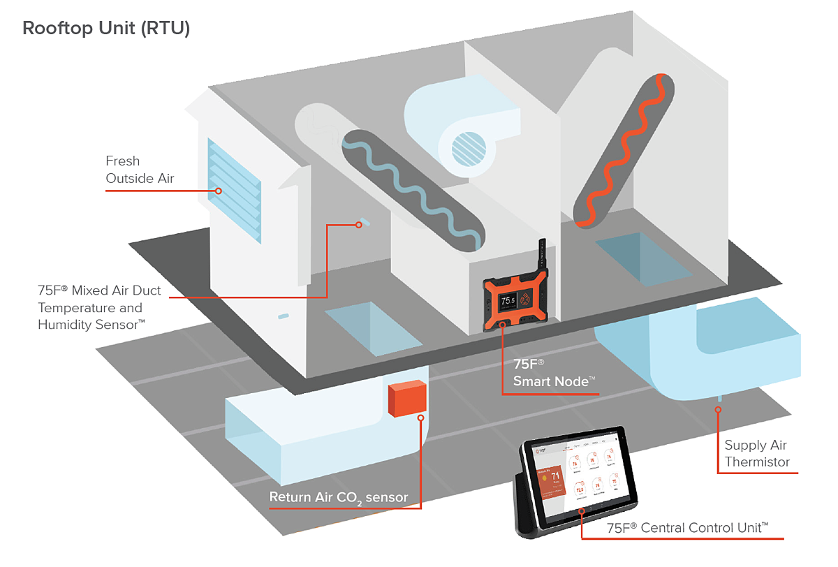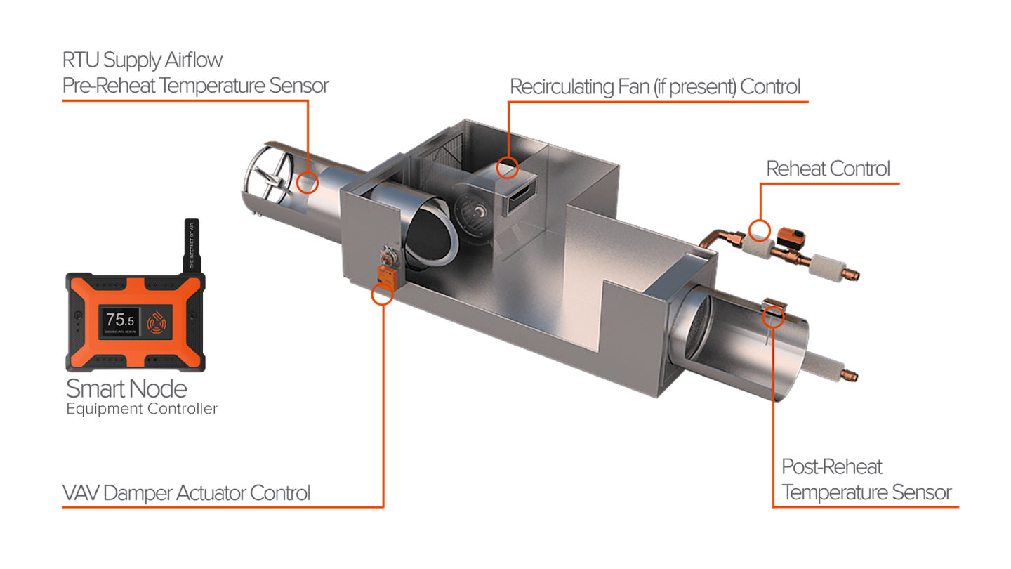 While our system can be spec'd into a new build, we also retrofit VAV and CV zoning systems for RTUs and Air Handling Units (AHUs) with smart controls. Our smart building controls use IoT-enabled data and algorithms to improve efficiency and drastically reduce electric bills. Not to mention we introduce remote control, monitoring and sensing capabilities to VAV with reheat systems so you and your clients can discover more ways to reduce your Operational Expenses (OpEx) even further!