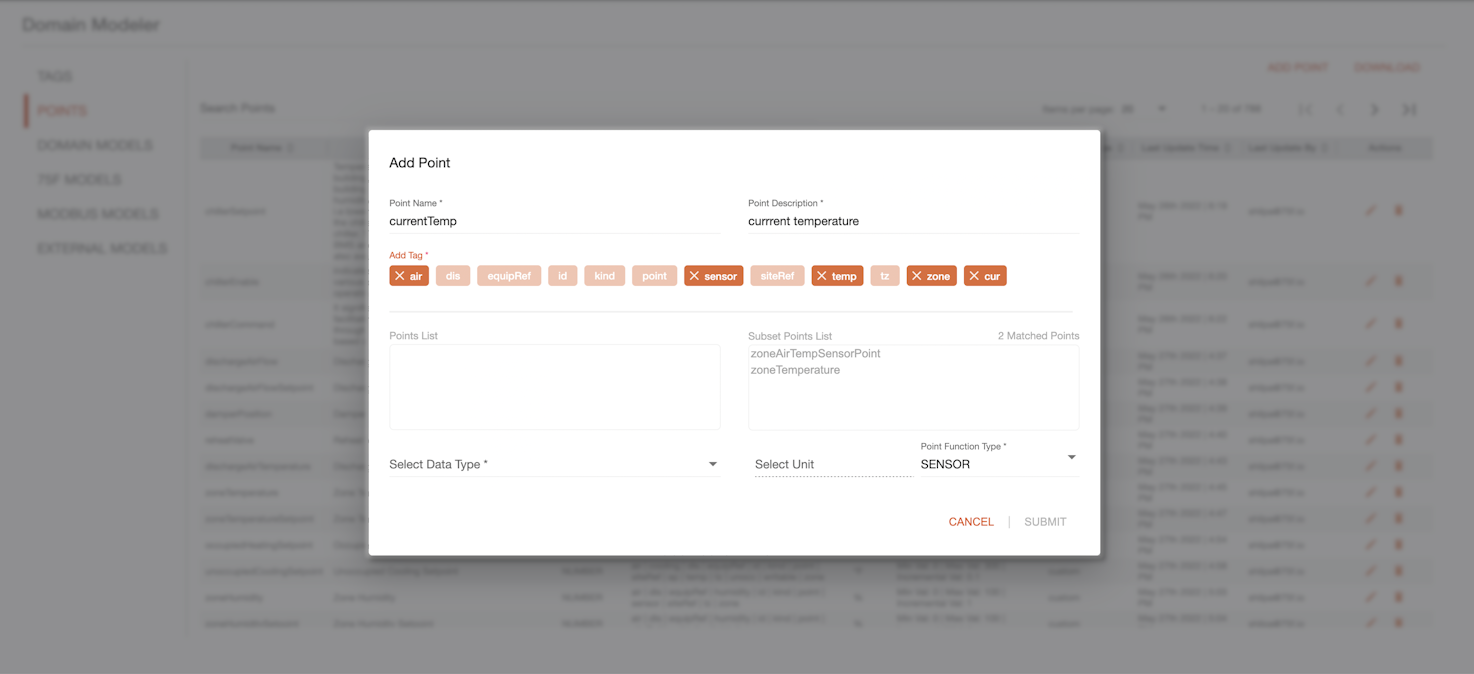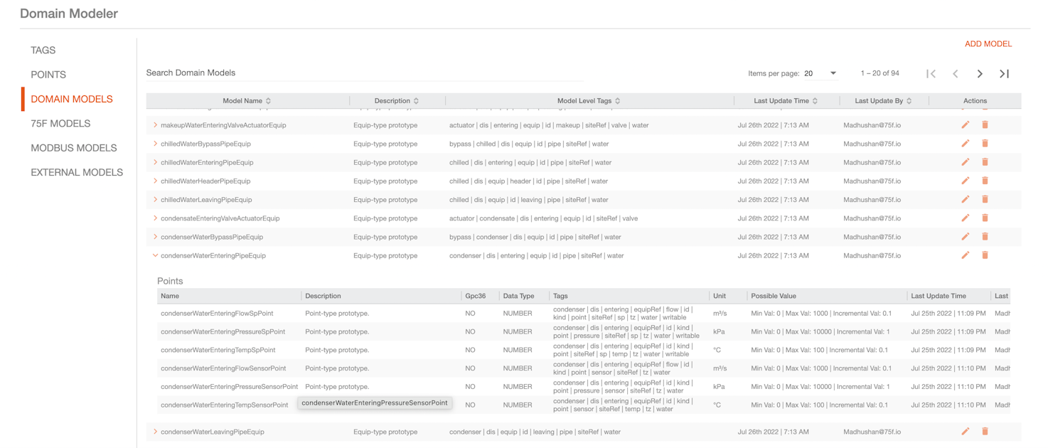 Based on tags, point library, and the standardized domain models established in the tool, the models working as templates will help standardize all tagging across equipment added into the tool. It will normalize the nomenclature used across various equipment, be it in a Modbus, BACnet, or custom OEM-supported format.