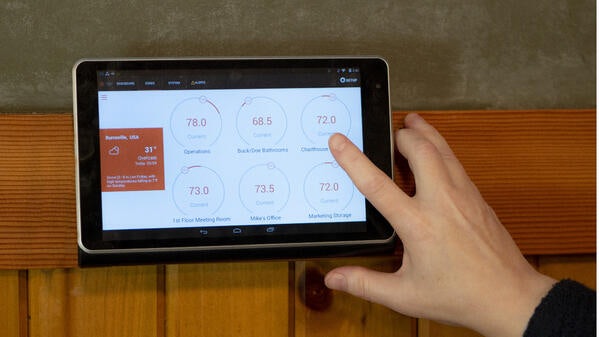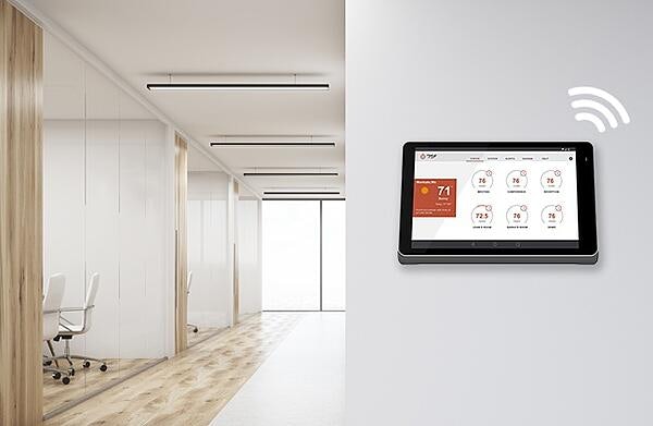 Every 75F building implementation must have at least one Central Control Unit (CCU). The CCU is critical to the value of data aggregation and cloud computing that 75F provides. The CCU is the front-end of the system on-site, serving as a wireless gateway to the cloud. The CCU is a removable tablet with wireless communications. It replaces a standard thermostat and easily installs, connecting to low-voltage relay contacts that activate the equipment’s heating, cooling and fan signals. The CCU provides a primary user interface for building management including mobile pairing, configuration and settings, zone status, schedules, sensor input graphs and much more.