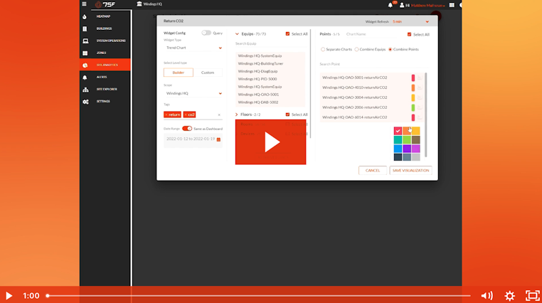 Tracking indoor air quality (IAQ) indicators across a building or portfolio has never been easier than it is with an IoT-based Building Management System (BMS) user platform. In this video tutorial, we teach 75F® Facilisight™ users how to quickly create trend charts that help them view and compare data like CO₂ over time.