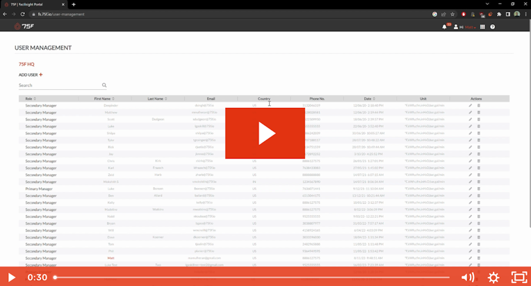 Need to remove a facility manager or other user type from the 75F user portal, Facilisight? Watch our tutorial to learn how you can remove users and their access to building sites in just 75 seconds or less. This action will only be possible if the user removing an account has the correct permissions to do so built into their own account.