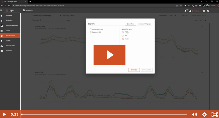 In previous installments of the 75 Seconds or Less series, we've covered how 75F users can leverage Portfolio Analytics Managerin Facilisight to create charts with real-time data and customize dashboards. In this video, we share the icing on the cake: exporting standard or custom dashboards with investors, employees, or other stakeholders in just a couple clicks.