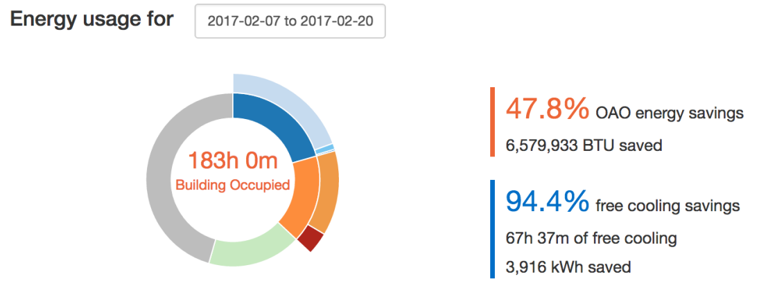 That same fresh outside air can provide free cooling when conditions are right. For example, if it were 72°F inside and 55°F outside, fresh air coming in at 55°F would help cool down the building. Free cooling through the economizer frequently works out nicely in the spring and fall and the outside air damper can be opened up well past the minimum. It’s just like opening up a window on a spring day instead of turning on the A/C, which helps save energy.
