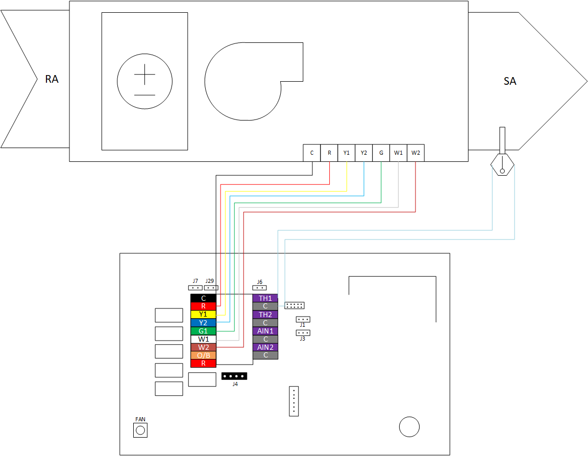 Wiring the Smart Stat to a Heat Pump is easy, just like a standard thermostat. 75F does provide a 10k type 2 thermistor probe for each Smart Stat sold, which is to be installed as the supply air temperature sensor. This sensor is used for alerting on poor unit health.