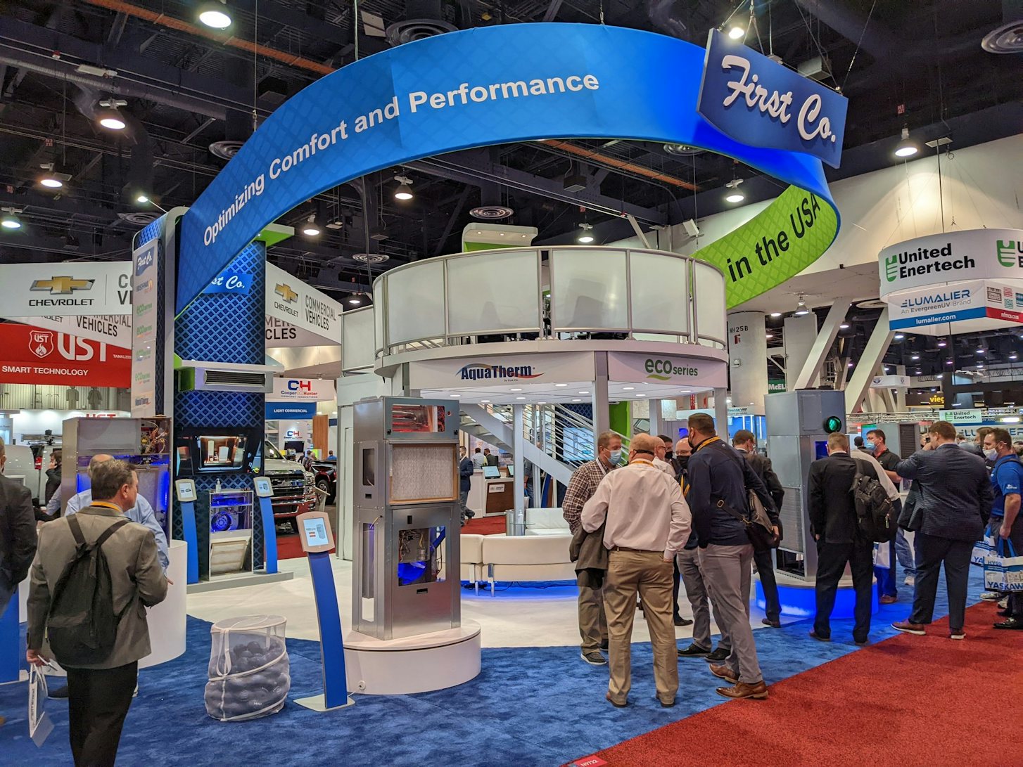 9:30 AM: "FirstCo is ready for show start with their HydroTech Slim 16 and a crowd gathering.@ahrexpo#ahrexpo2022"