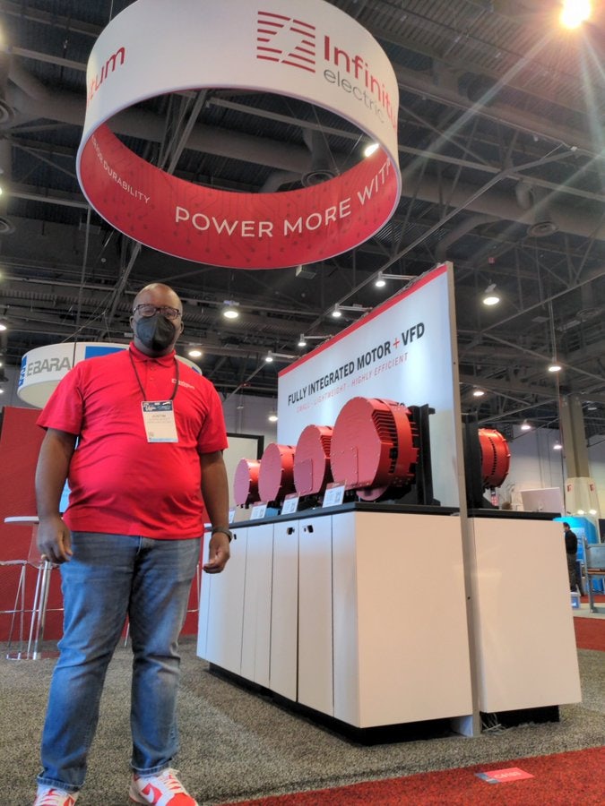 12:32 PM: "Here looking at @Infinitumfully integrated motor in VFD drives that are lightweight, small, fantastically energy efficient, and also extremely quiet. @ahrexpo#ahrexpo2022"
