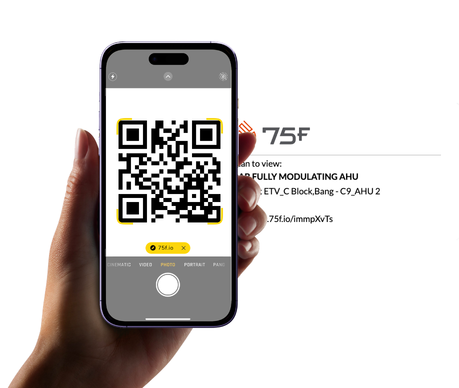 The information available through Active Scan is a read-only view into the same data and insights that customers see in 75F's Facilisight portal. By simply scanning a QR code placed on each piece of HVAC equipment, users can access a digital twin of the physical asset, including: